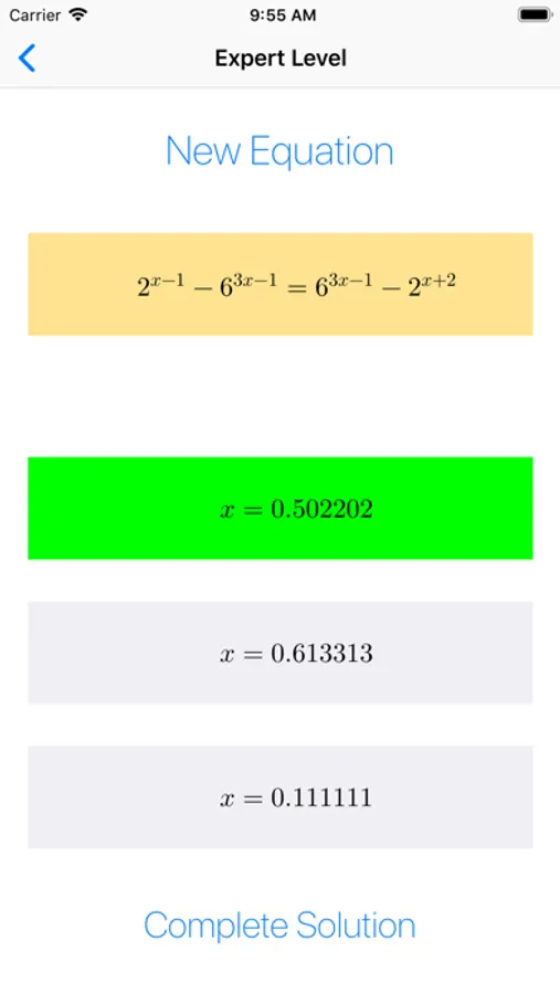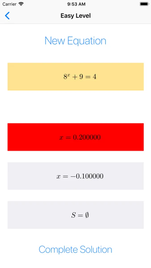 The App offers exponential equations who ARE ALWAYS DIFFERENT and