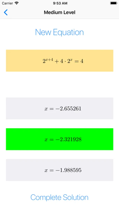 • "Medium" level: equations where the number of steps to get to the solution is a bit higher.