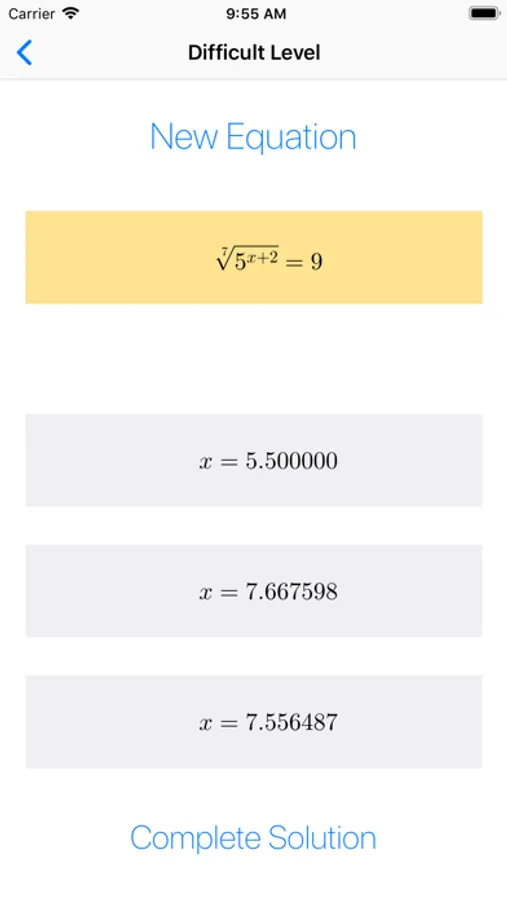 • "Difficult" level: equations that can leads to a quadratic equation (via variable replacement).