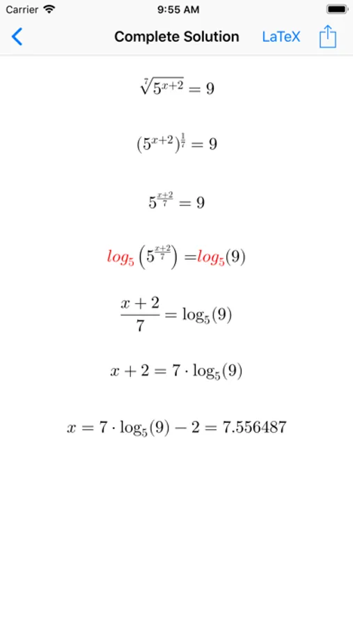 App for practice on exponential equations.