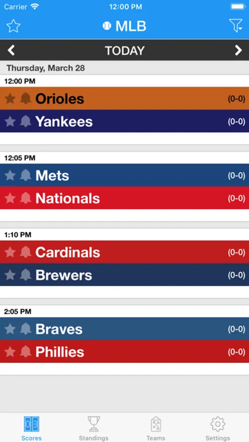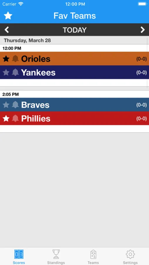 We are aware that some of you don’t want to follow all scores and alerts. So, setup your favorite teams, and view them all on the same page for easy browsing.