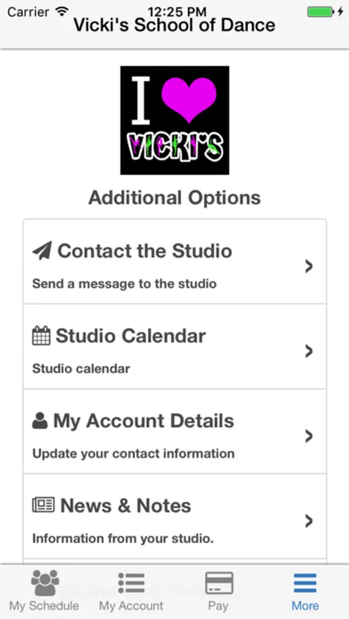 Manage your entire dance studio experience with the all new Vicki's School of Dance app. Enjoy mobile check-in and on the go tuition payments. Stay up to date with all the latest information from the studio. Never miss a beat.