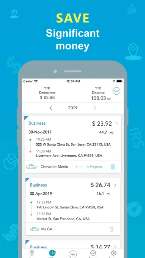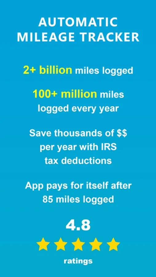 Mileage is tracked and logged automatically in the background, for every trip you drive.