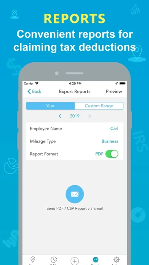 It simplifies your report generation with a single tap. Email a detailed report of your trips in PDF/CSV format.