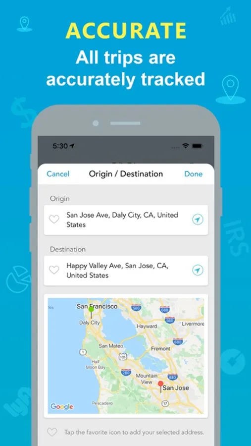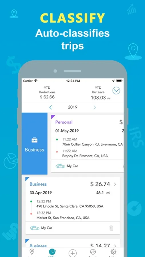 Automatic trip detection removes the pain of manual trip tracking. It makes sure that no trip is missed. Minimize your App and start tracking in the background all the time. Magically detects, creates, and classifies trips in the background, without the worry of keeping track of trips.
