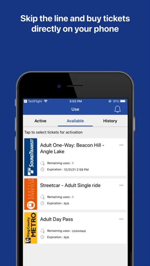 The Transit Go Ticket App allows riders to buy bus, rail and water taxi tickets using their mobile device. No more worries about carrying cash for transit fare, Transit Go Ticket is good on King County Metro Buses, Sound Transit Express Bus, Light Rail and Sounder, King County Water Taxi, Seattle Streetcar and Kitsap Transit routed buses and fast ferry.