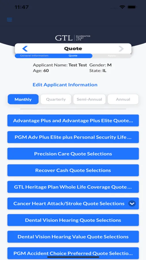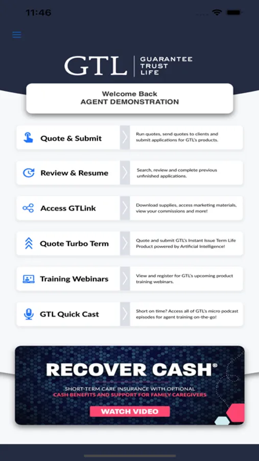 This application is used to quote and apply for Guarantee Trust Life Insurance products, and access marketing materials and educational videos.