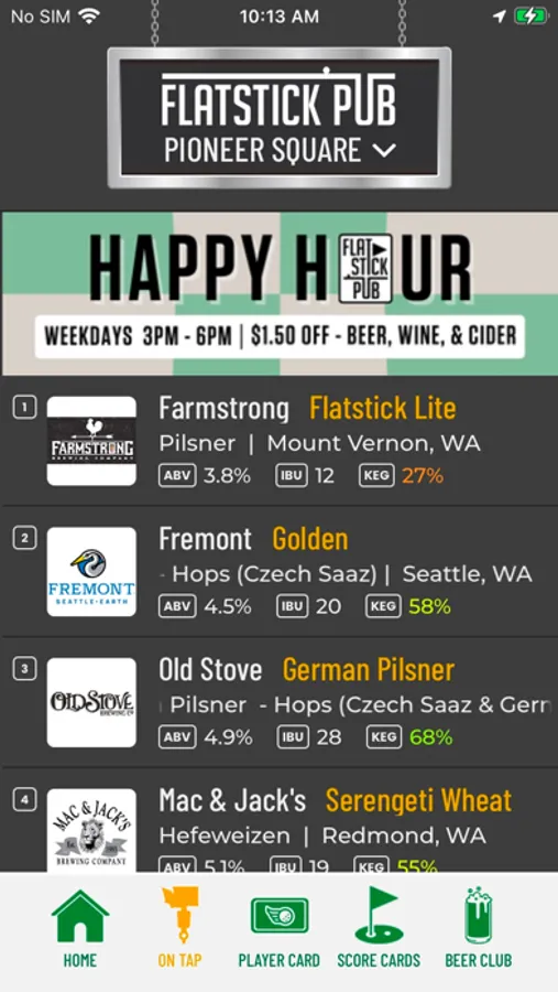Join our Beer Club and get rewarded for stopping by and having a pint with us. Each unique purchased beverage you rate and/or review gives you a punch on your very own digital loyalty card. Fill the card and get a reward -- T-shirts, free growler refills, pour discounts, parties and more. Collect stickers with each level too!
