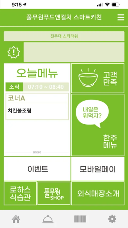 풀무원푸드앤컬처 스마트키친은 급식사업장의 식단정보 및 이벤트등 다양한 정보를 제공하며,