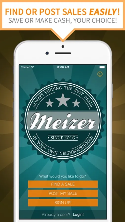 Meizer is revolutionizing the way garage/yard sales are hosted and searched for. Using the benefits of today's modern technology, Meizer provides a new way of "Always finding the best deals, in your own neighbourhood!”