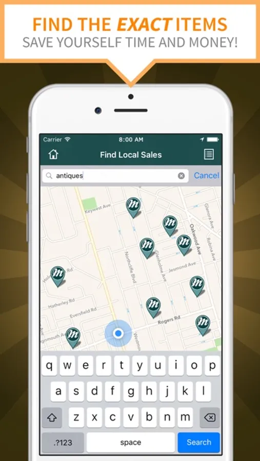 • no need to create and post home made posters, users see your sale from up to 100 miles (160 kilometers) away!