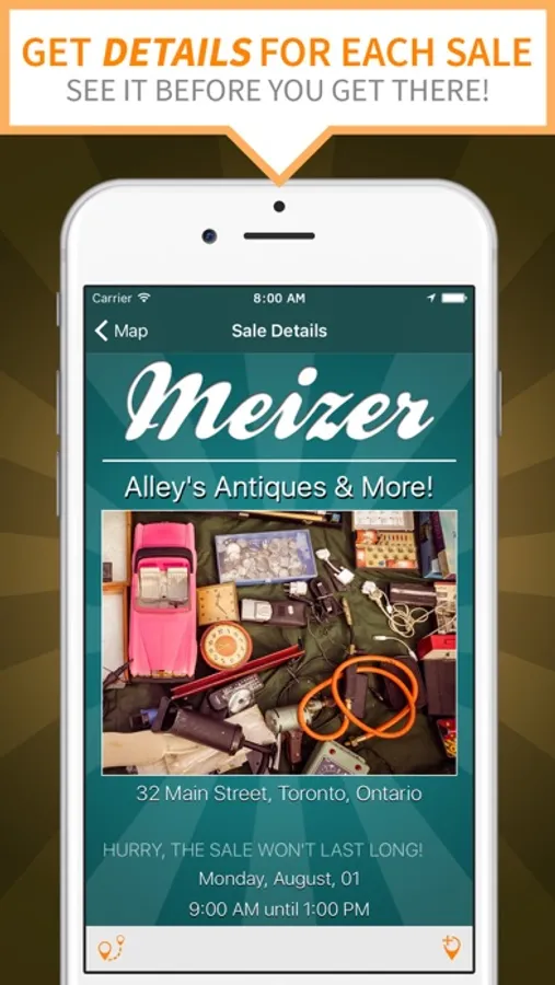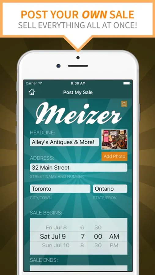 Buyers, no more searching local newspapers, local classified sites or scrolling through hundreds of social media posts only to find disappointing quality sales. Find EXACTLY what you are looking for and filter out the sales you don't want to see. Looking for toys? Looking for antiques? Collectable items? Something unique or rare? Shoes, purses, clothes? No problem, Meizer will find all of these for you!