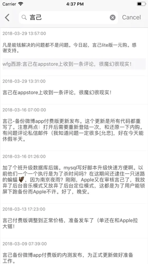新增功能:本地设备上备份的微博与Apple iCloud同步,云端保存一份备份的微博。