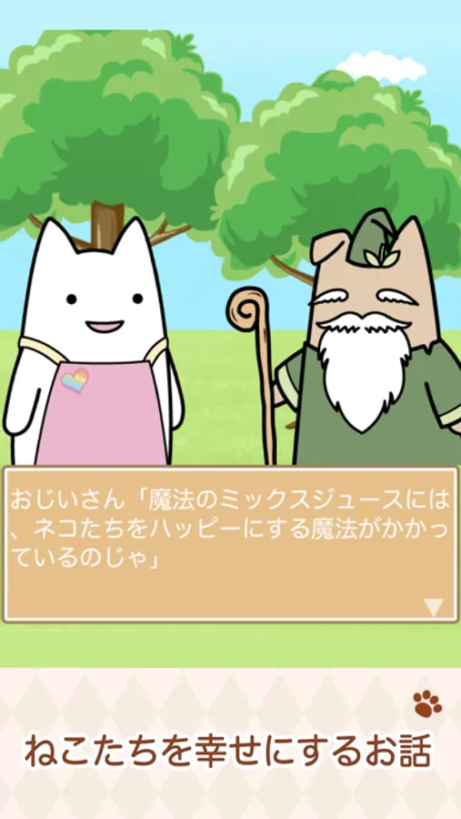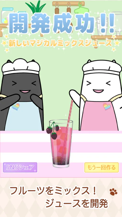 ねこたちをハッピーにして「伝説のミックスジュース」を作り、感動のエンディングを見届けよう!