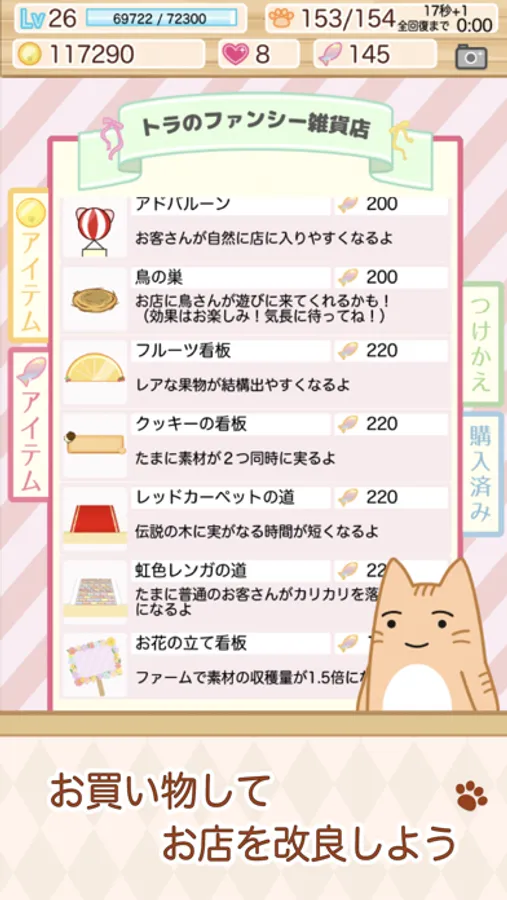 稼いだお金でアイテムを買って、お店を大きくしよう!