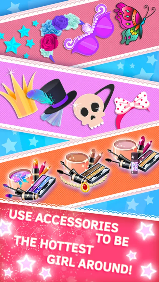 Use likes earned in the competition to buy exclusive accessories and cosmetics for your model in doll makeover salon. Buy looks and Pro makeup sets to be the hottest girl around!