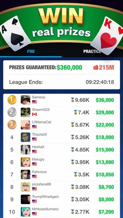 • Prize tournaments are available in about 75% of the world. Prize tournaments are not enabled in the following states: AR, CT, DE, IN, LA, ME, and SD. If you don't live in a real prize-enabled region, you can still play for fun with our virtual currency.