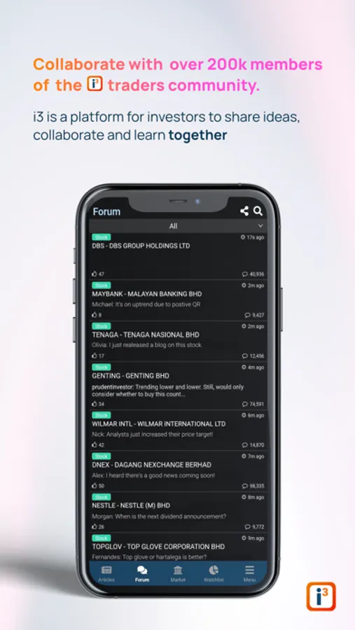 The I3investor App helps you track stock prices, market news & blogs, price targets, stock trend and latest price movements in the stock market (NASDAQ, NYSE, TSX, LSE, ASX, SGX and KLSE).