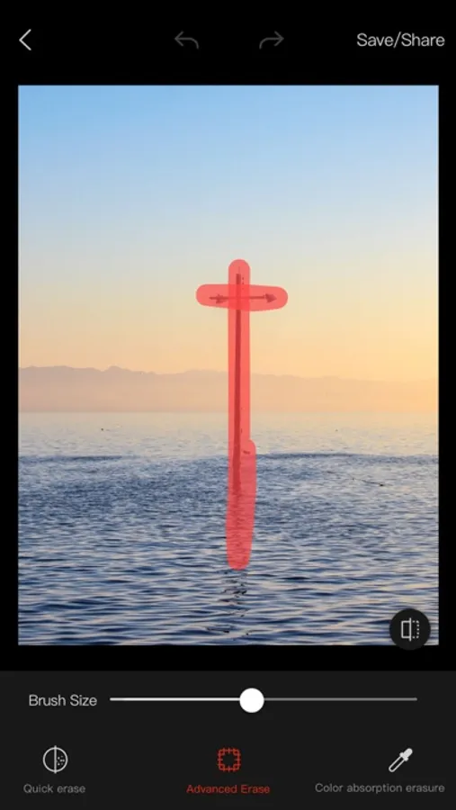 You took a very nice photo at the beach, but unfortunately there was a plastic bottle next to it. Do you want to get rid of the plastic bottle?