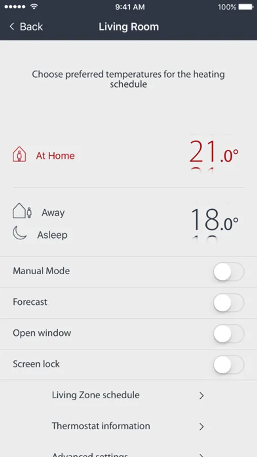 Save energy by following your scheduled heating demands and automatically lowering the temperature when you do not need it. Easily set the temperature to fit your rhythm and enjoy superior thermal comfort.
