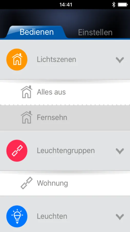 Darüber hinaus steht Ihnen die Funktion „Lichtszenen“ zur Verfügung. Sie können verschiedene Lichtszenen erschaffen, abhängig von Tageszeit, Lichtverhältnissen und gewünschter Raumatmosphäre. Beispielsweise richten Sie die Lichtszene „Sonniges Wetter“ ein, für Tage an denen Sie aufgrund der Lichtverhältnisse weniger Licht benötigen. Alle Leuchtgruppen, die Sie der Lichtszene zugeordnet haben, können so gleichzeitig heruntergedimmt werden. Dadurch sparen Sie Energie und Stromkosten.
