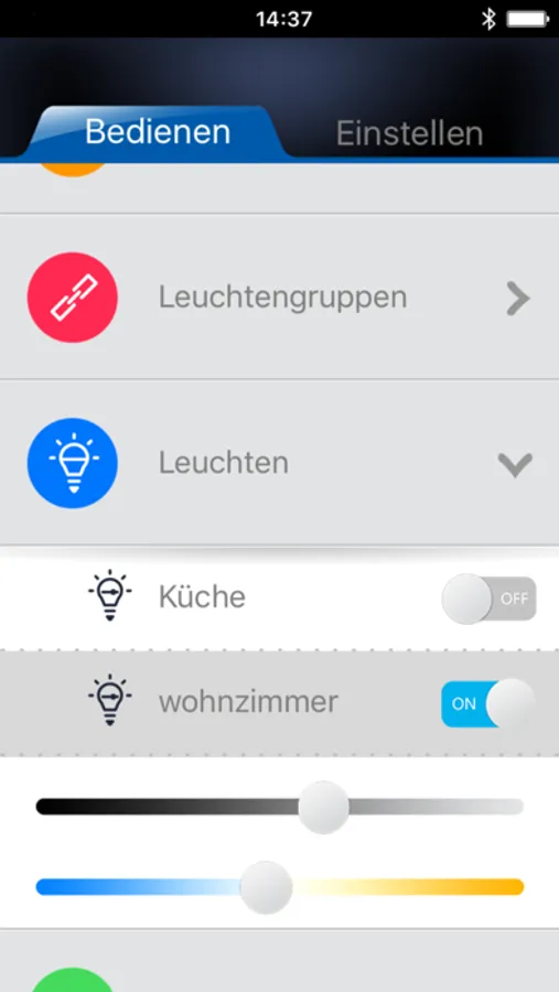 Über diese App lassen sich Helligkeit und Farbtemperatur (von Warmweiß bis Kaltweiß) schnell und mühelos einstellen.