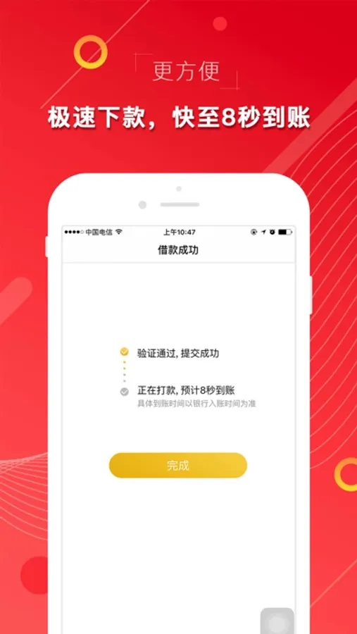 1、闪电借款:极速贷款,当天放款、8秒到账。