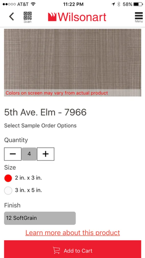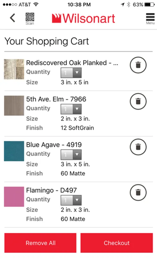 Scan—Use the camera on your phone to scan the QR codes found on the back of samples and wallboards.