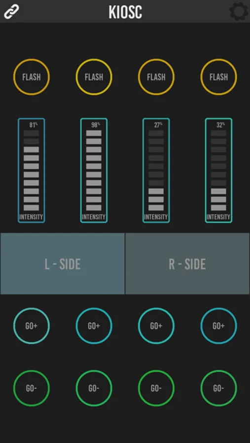 There is a lot of cool equipment available that can be controlled via UDP or OSC messages. You can choose Kiosc to be the stylish front-end for triggering all these video, audio and lighting devices. When designing the layout of your dashboard you can combine buttons, sliders, encoders, check-boxes and colour-pickers. You can drop in your logo or any other graphic.
