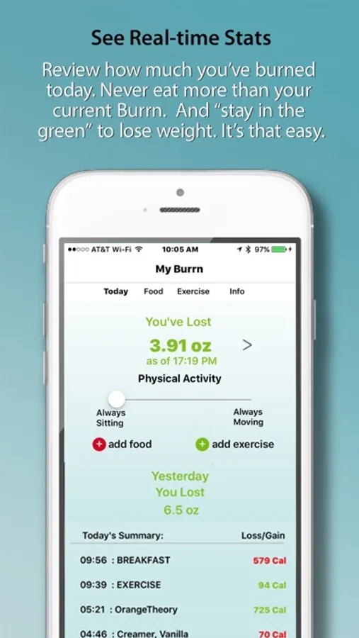 Add your exercise calories and see how it affects your Burrn rate.