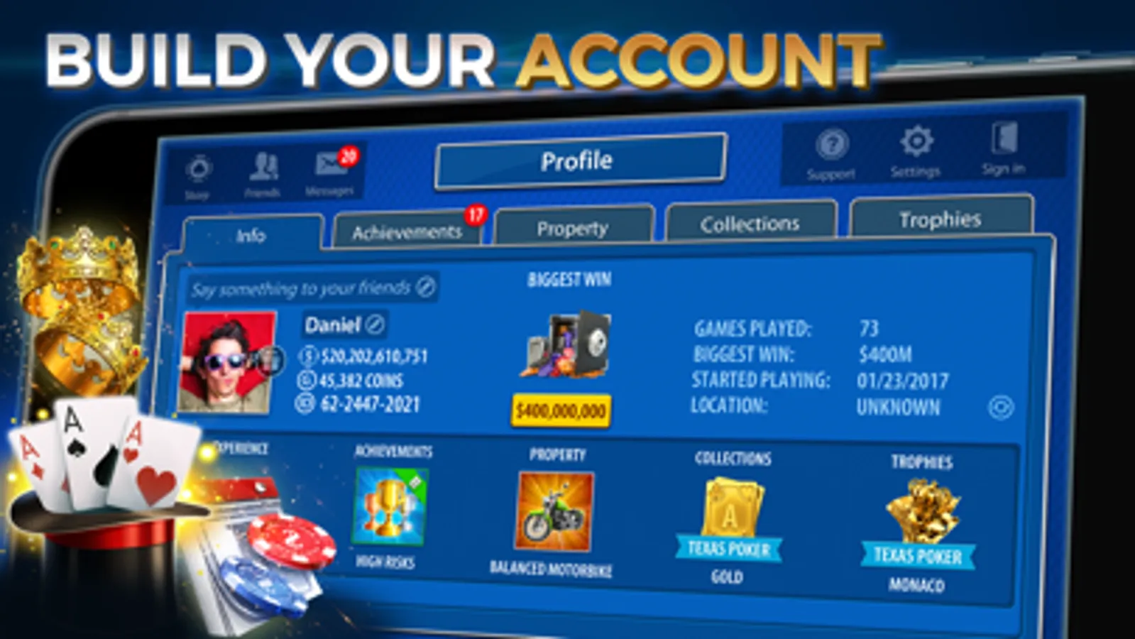 • YOUR OWN PROFILE PAGE – Track your progress and status in the game! Get experience and level up. See how many baccarat games you've won and achievements you've completed. Get unique properties and display them on your profile. View other players' profiles to see how you compare!