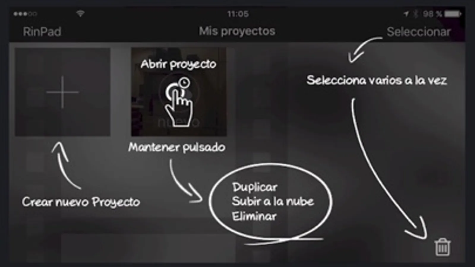 Todo desde las herramientas incluidas en RinPad sin tener que utilizar otras funciones externas a la aplicación. Más de 5 funcionalidades integradas en una sola (Grabación, importación, edición, realización, anotaciones, etc.)