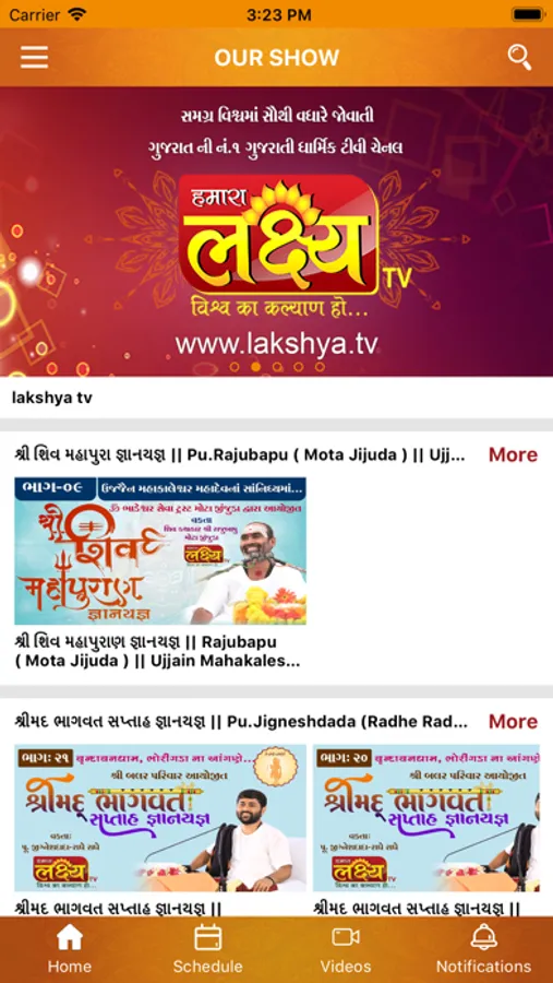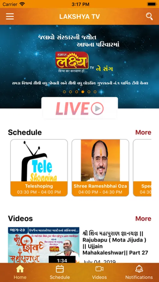 Lakshya TV channel is one of India's leading gujarati spiritual television channels. Over the years, the channel has created significant marquee properties through an impressive lineup of programs ranging from the light hearted to the supernatural, exploring various genres of bhakti complimented by an explosive mix of social events and Pravachan, Katha, Bhajan, Kirtan, etc...