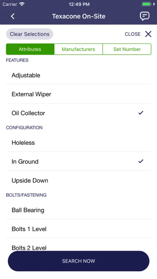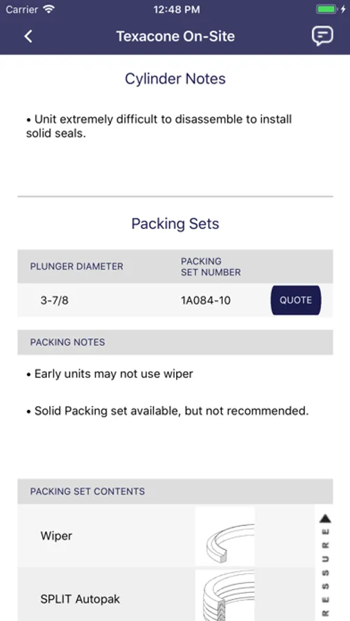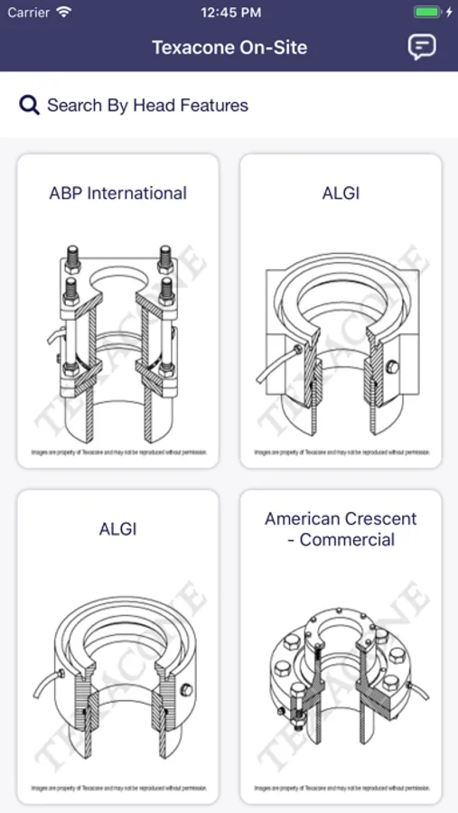 The APP uses the same patent pending Interactive Elevator Cylinder Head ID system as found on Texacone's website. By selecting the head attributes, the choices are narrowed down from over 150 choices. From that point, it's a simple click to gain access to the detailed information for that manufacturer and specific cylinder head.