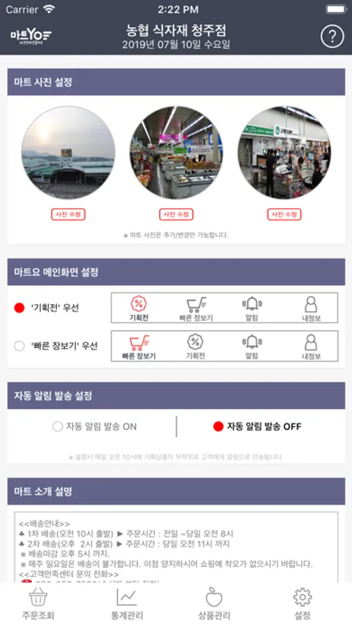 - 상품관리 : 마트에서 판매되는 상품정보를 등록하실 수 있습니다.