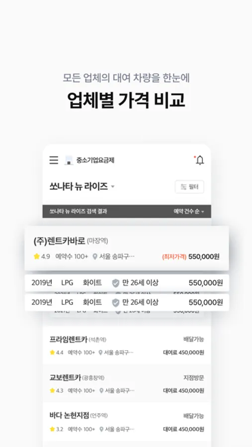 • 현재 내 위치 자동 검색, 주소 검색으로 전국 렌트카 실시간 검색 가능