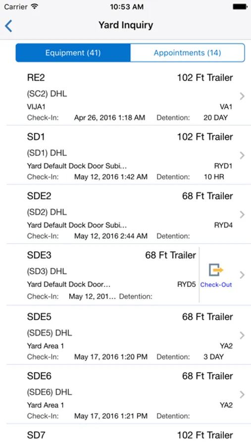 With Oracle Mobile Yard for Oracle E-Business Suite, yard personnel can perform yard transactions such as check-in and check-out and can quickly look up appointments, equipment, and yard capacity.