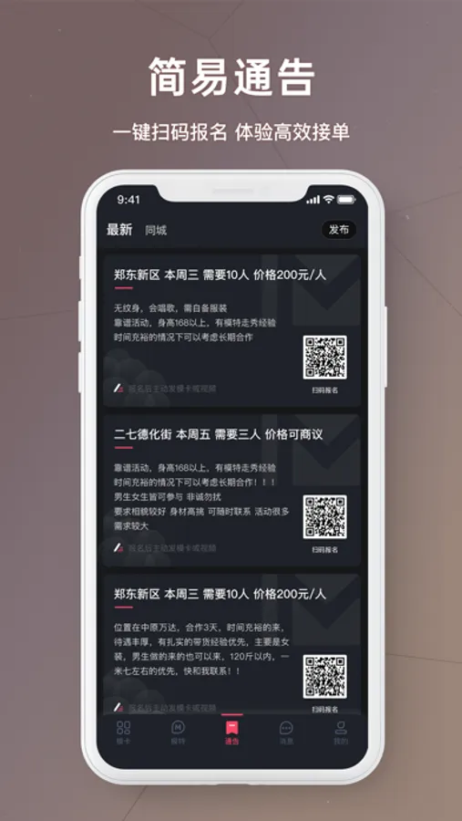 ※ 企业经纪可在平台后台上自主发布通告及招募信息