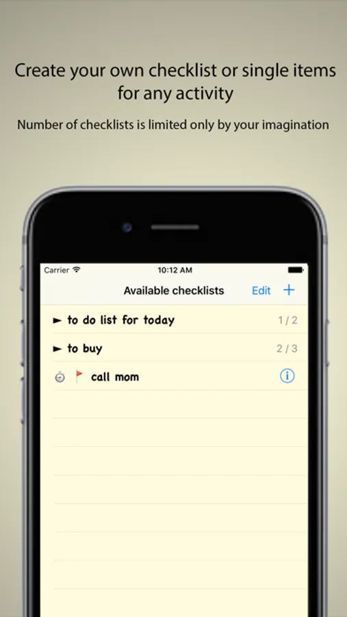 The most reliable way to do not forget and do not miss out is to control yourselves with checklist. This app provides a simple and reliable way to create your own checklists. You will be able to:
