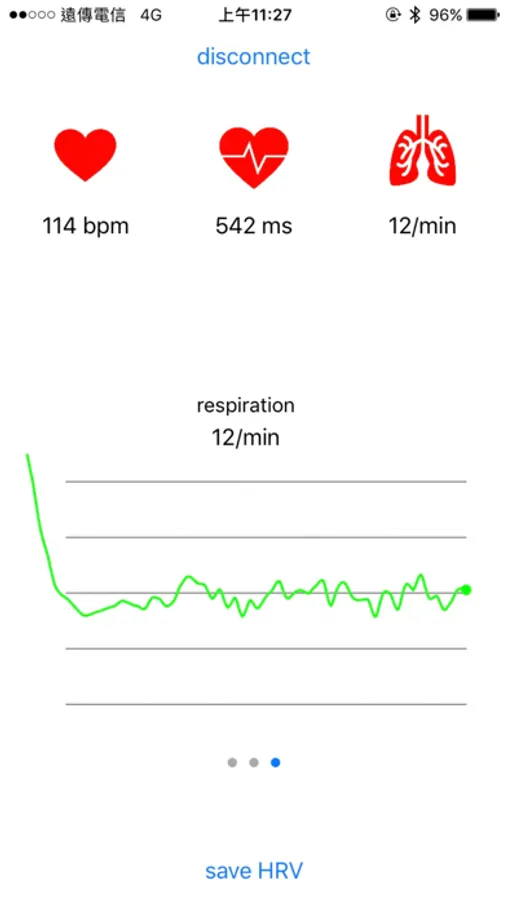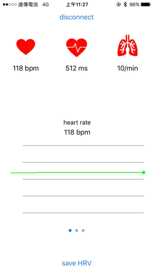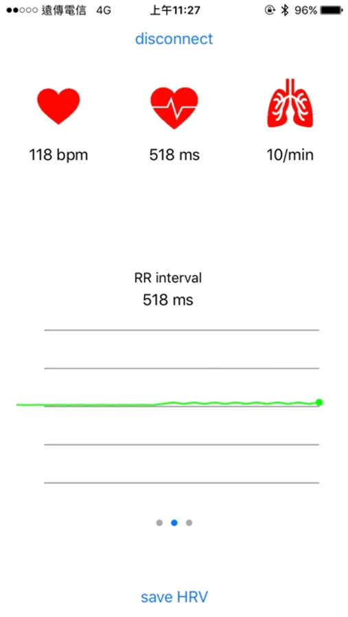 Respiration is connected to HRV bluetooth device to show your heart rate value.