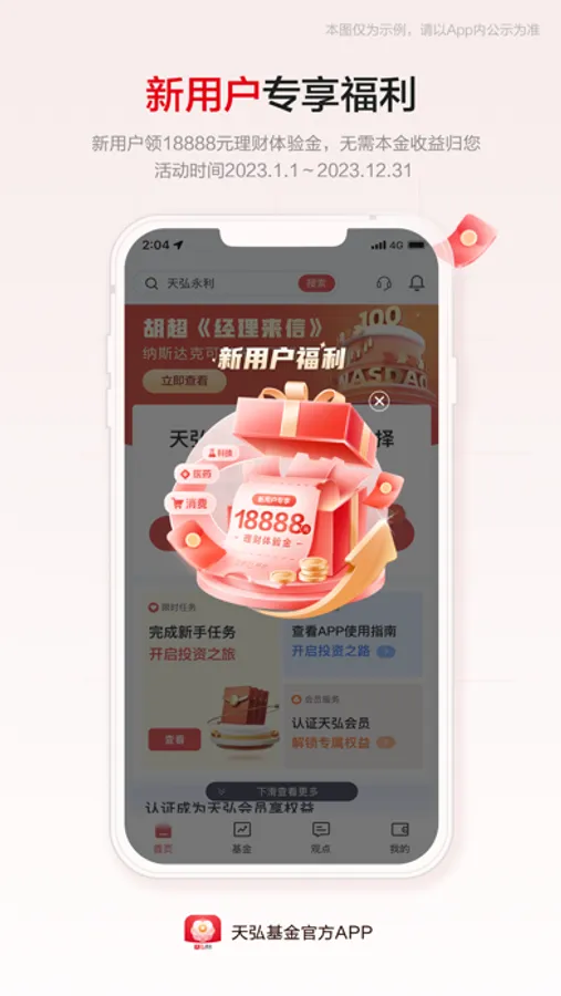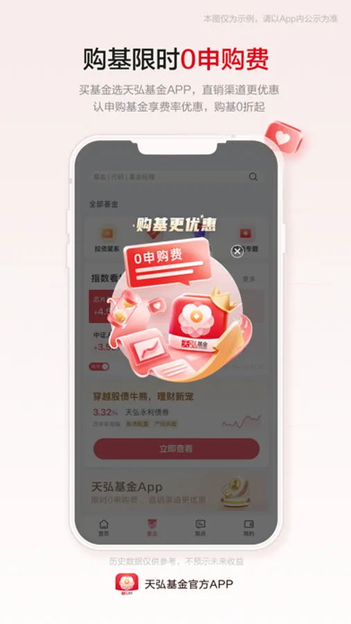 天弘基金成立于2004年11月8日,天弘基金App是天弘基金官方理财平台,认、申购基金限时0手续费,购基更优惠。