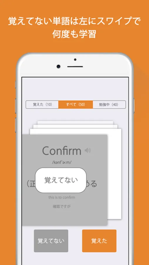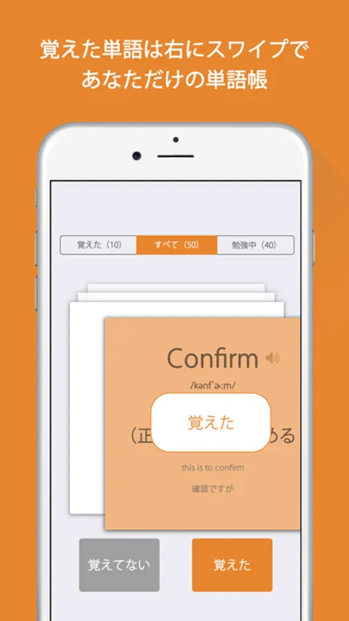 ・英単語カードを使って、暗記していない単語を単語帳に登録できます。(フラッシュカード学習)