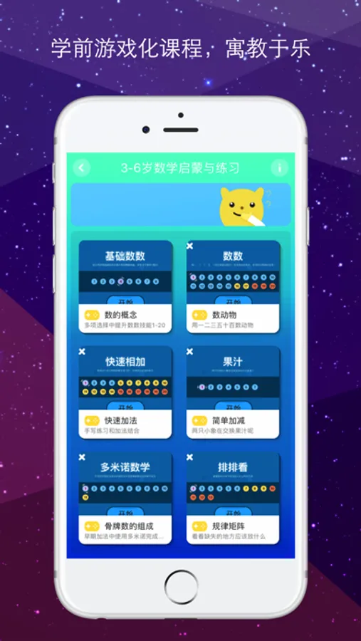 内涵多款符合儿童认知发展规律的益智游戏,包括数学思维训练,物理规律认知等等。