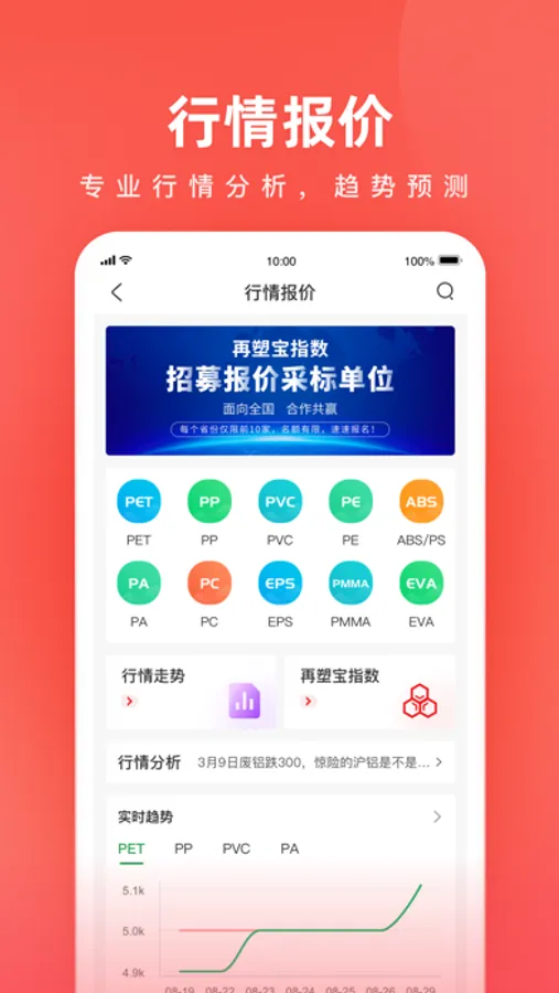 再塑宝分为废塑料、破碎料、再生颗粒、改性颗粒、塑料机械、现货供应、企业直采、设备商城、行业资讯等版块。内容涵盖再生塑料、废塑料、再生塑料颗粒、塑料颗粒、破碎料、改性颗粒等再生资源的现货和价格行情等,聚集了再生资源行业的供应商和采购商,是塑料再生机、破碎造粒机等塑料机械和各种再生塑料、废塑料回收的现货交易平台。塑料种类涵盖PP、PE、PVC、PS、ABS、EVA、PA、PET、PC、等各种废塑料、破碎料、再生塑料和改性塑料等。现货供应版块包括所有塑料颗粒、破碎料的供应、出售和转让处理。企业直采版块包括各种废塑料、破碎料、再生塑料和改性塑料的采购企业和需求。设备商城版块涵盖各种塑料机械,包括塑料再生机、塑料破碎机、塑料颗粒机、塑料灌浆机等相关塑料设备。再塑宝专注于为再生塑料整体产业链服务,致力于打造再生塑料行业专业权威的高质量交易线上生态。