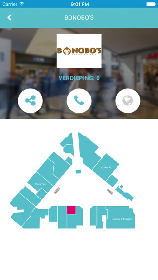 Deze app helpt je bij het zoeken naar een winkel via de interactieve plattegrond. Je vindt er alle specifieke informatie van de winkels.