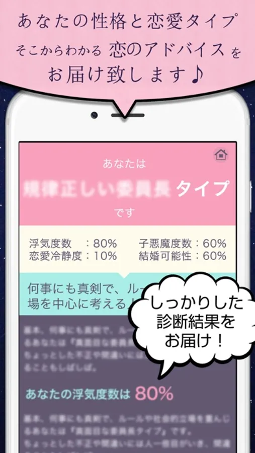 本アプリ『10問でわかる!あなたの恋愛傾向と魅力』で導き出したあなたの「恋愛魅力」で、あなたの人生が素晴らしいものになりますように。