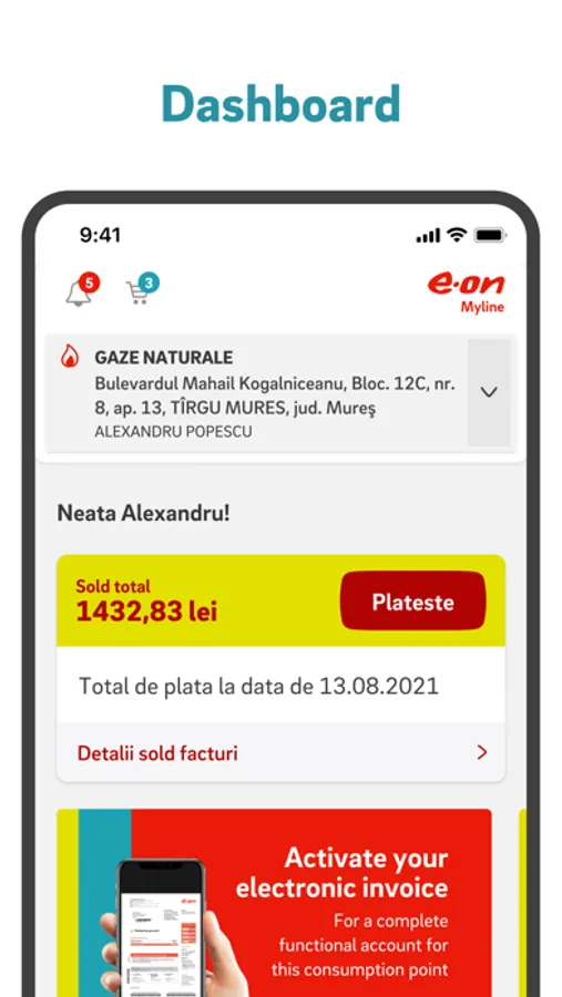 • Activezi factura electronica și o primești în cont și pe e-mail
