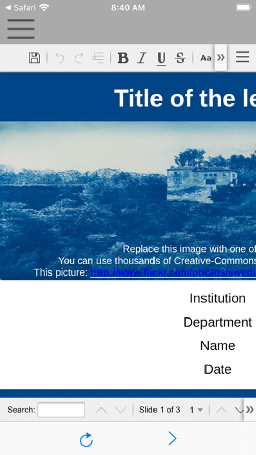 XOfficeImpress is the app OpenOffice Impress that is run remotely in our servers. As such, it inherits OpenOffice Impress features: