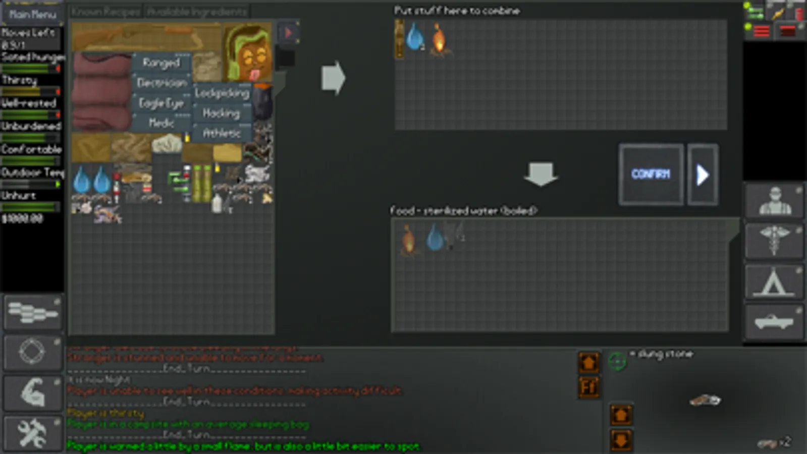 Foraging - Search for edible plants and water, and use special skills to identify what's safe to eat.