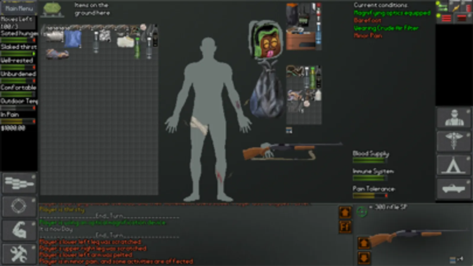 Crafting - Extensive crafting system which allows for substitutions of similar items. Make a rifle scope from half a pair of binoculars, or a noise trap from a pill bottle and pebbles.